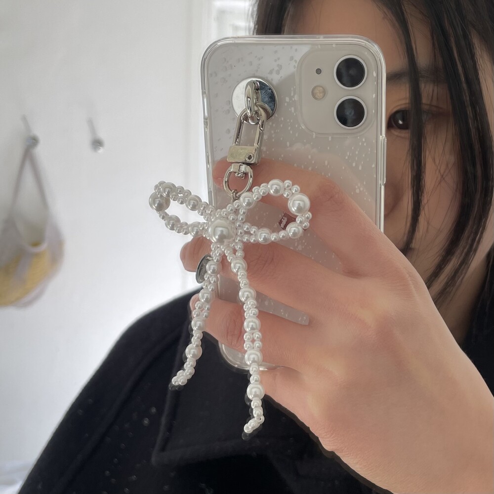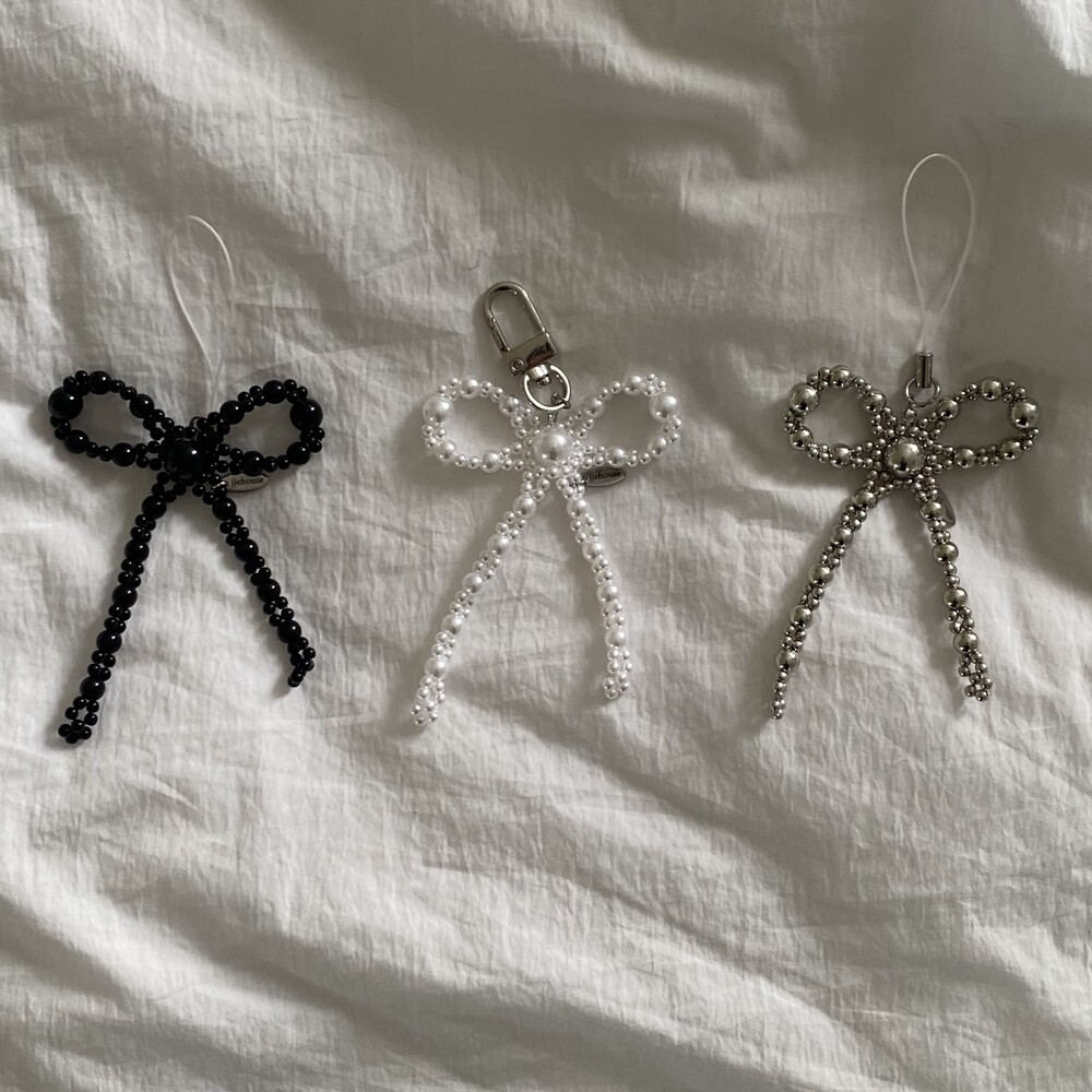 진주로 구성되어있는 리본 비즈 키링/스트랩 입니다 :)